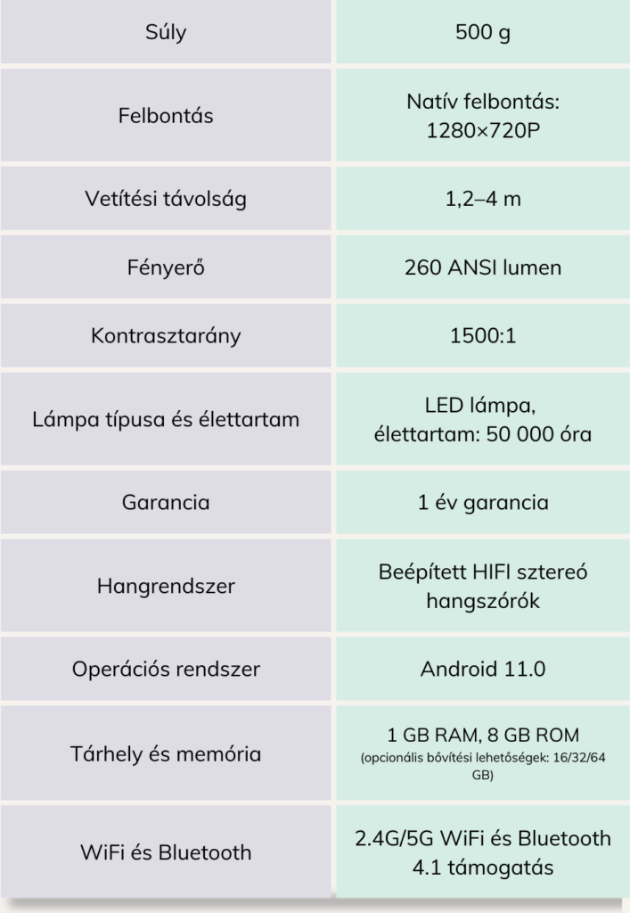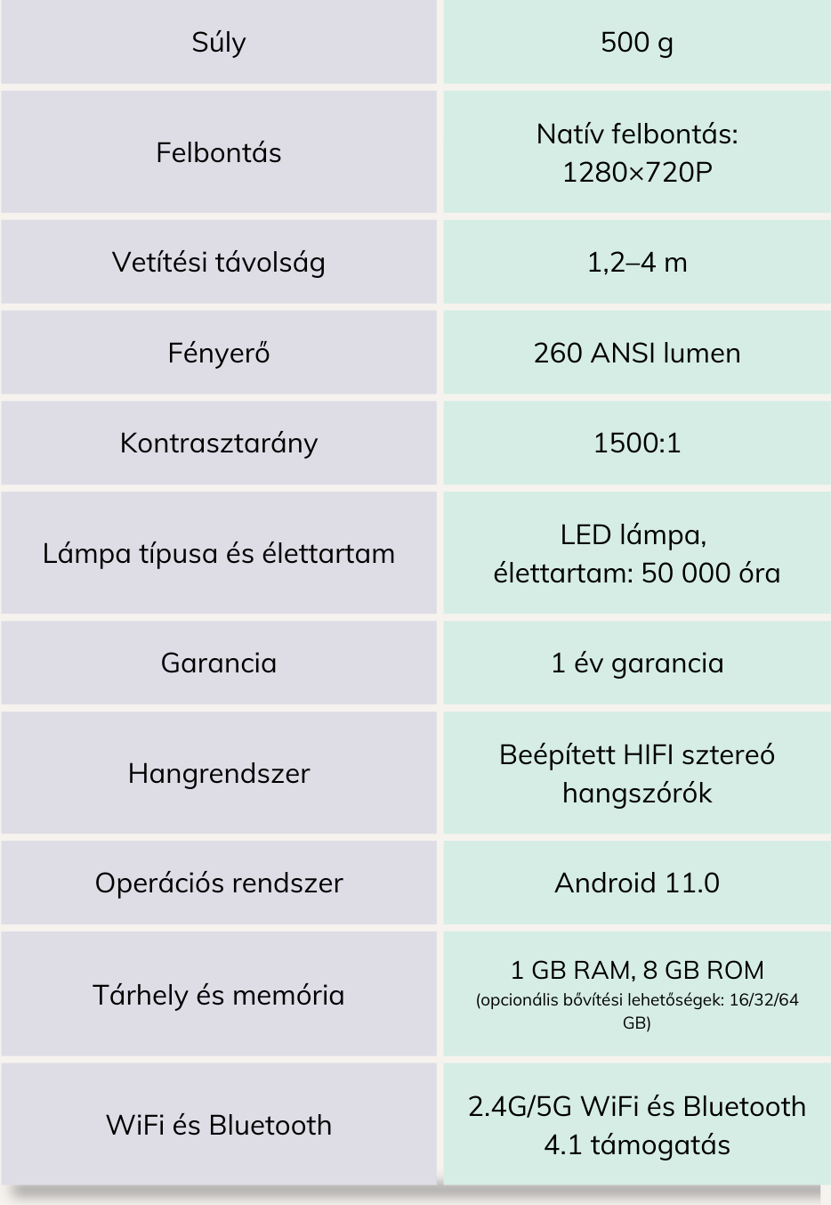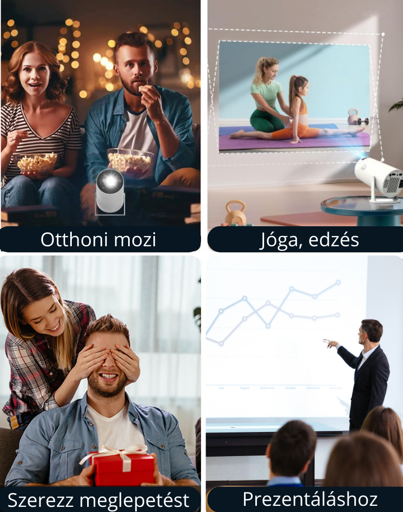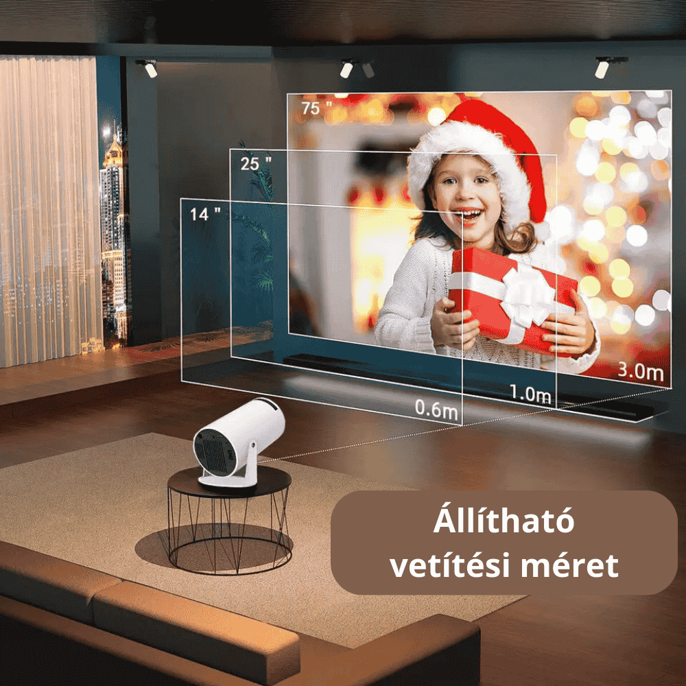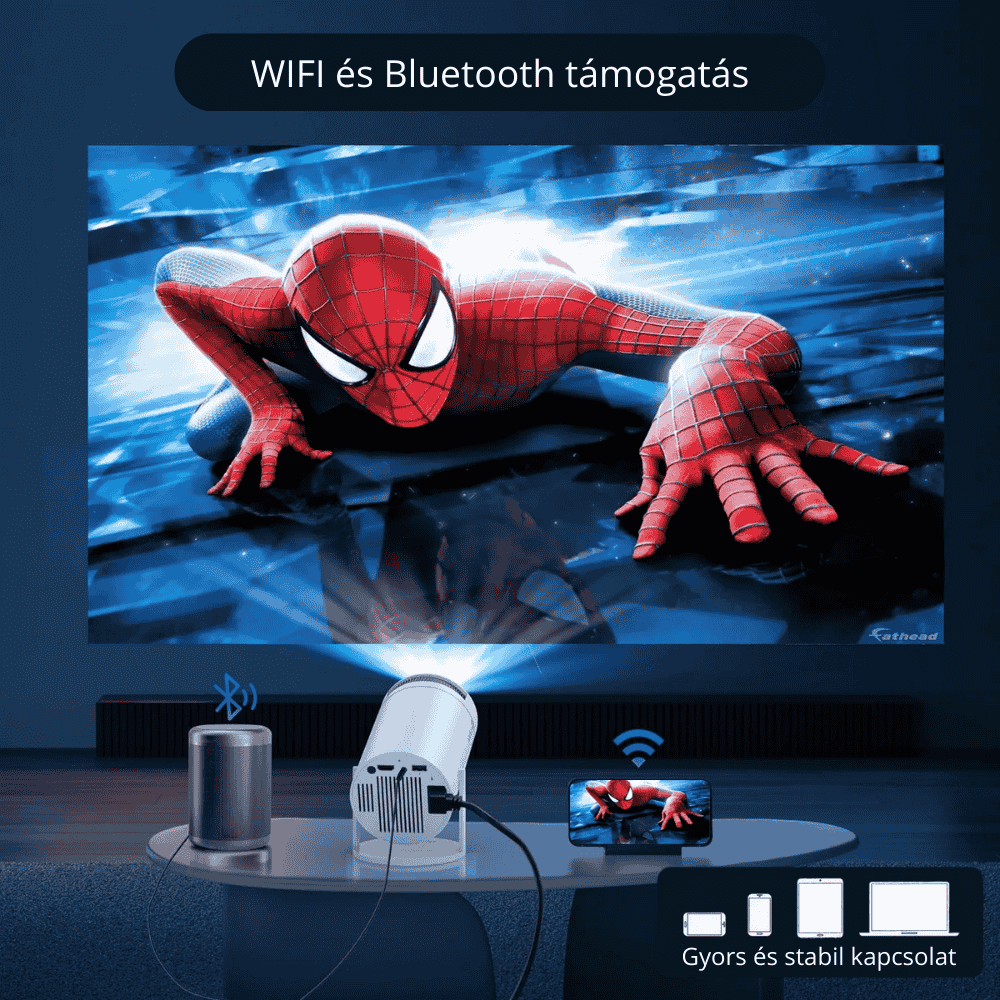 Nincs szükség bonyolult beállításokra – a projektor percek alatt használatra kész. Wi-Fi kapcsolat segítségével könnyedén csatlakoztathatod a telefonodat, és azonnal kivetítheted a képernyőn látottakat.